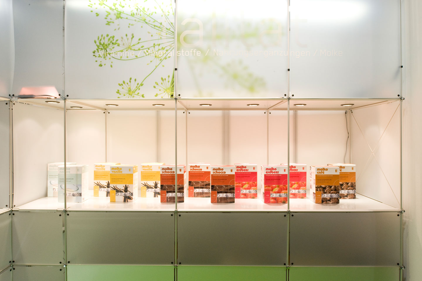 Entstanden ist ein in der Raumkomposition funktionaler, in der Farbkomposition licht und vital anmutender Messestand.